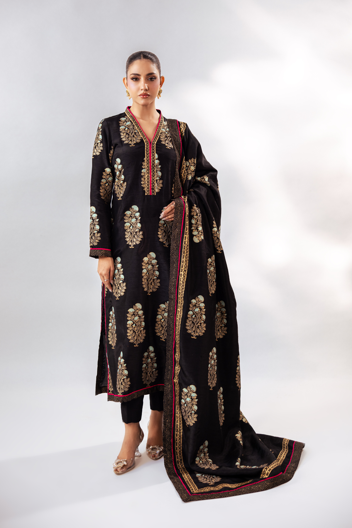 Odhini: Double Sided Block Printed Odhini Total Fabric: 7 metres Block Printed Shirt Plain Trouser