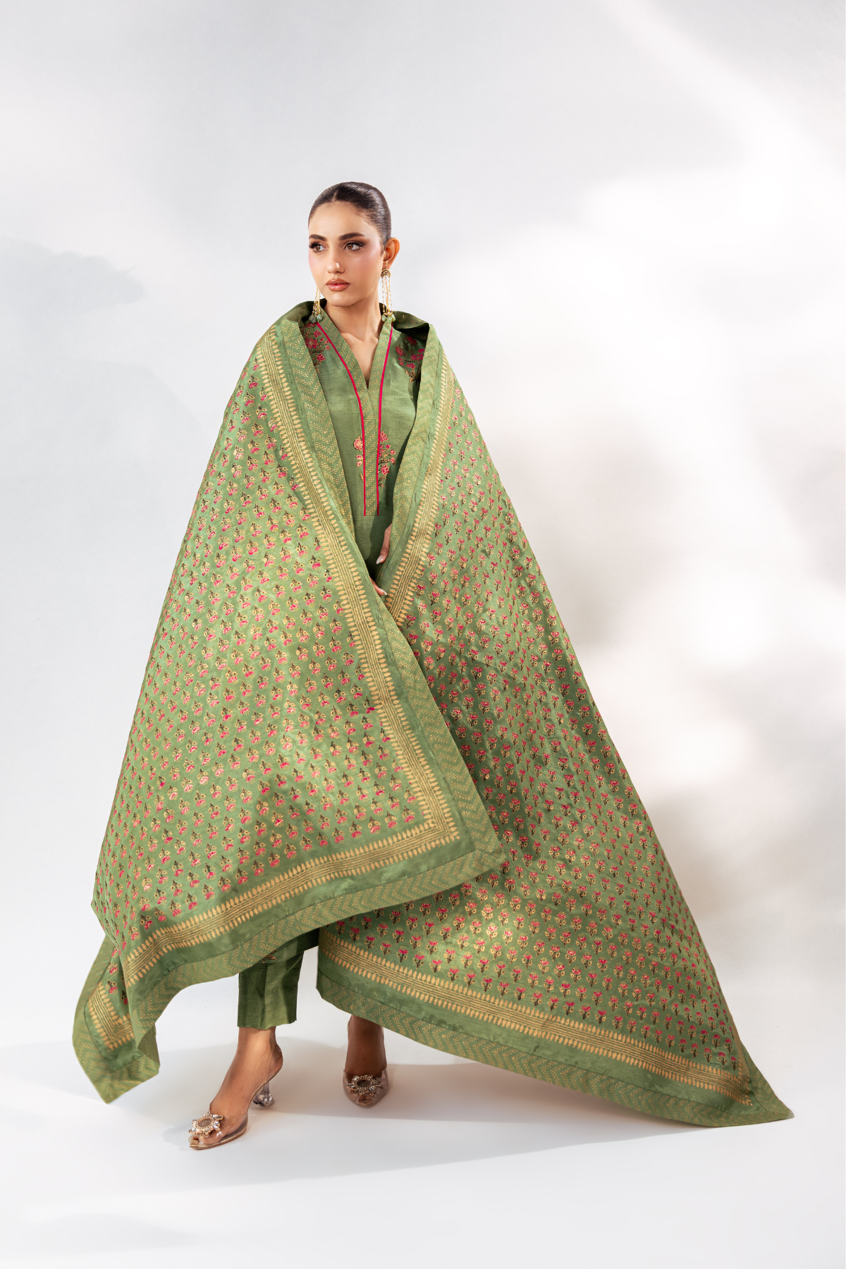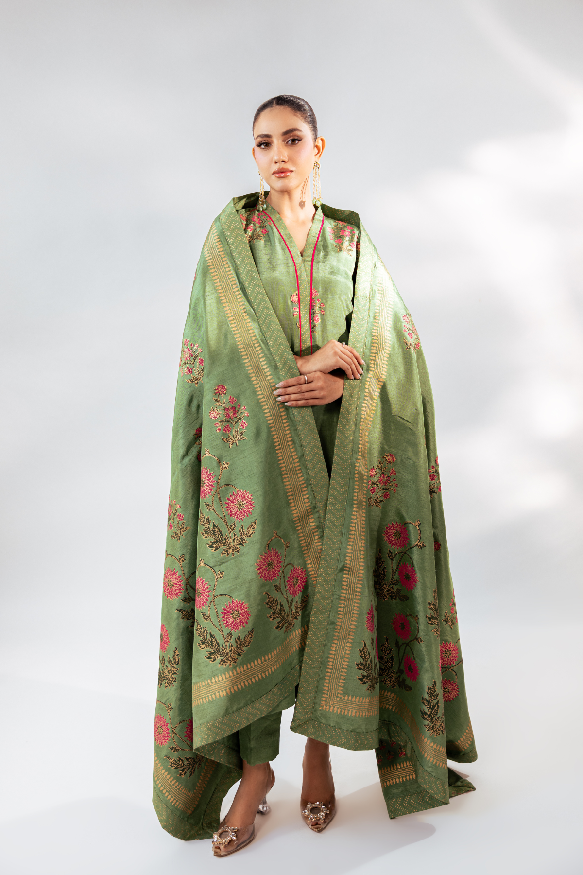 Odhini: Double Sided Block Printed Odhini Total Fabric: 7 metres Block Printed Shirt Plain Trouser
