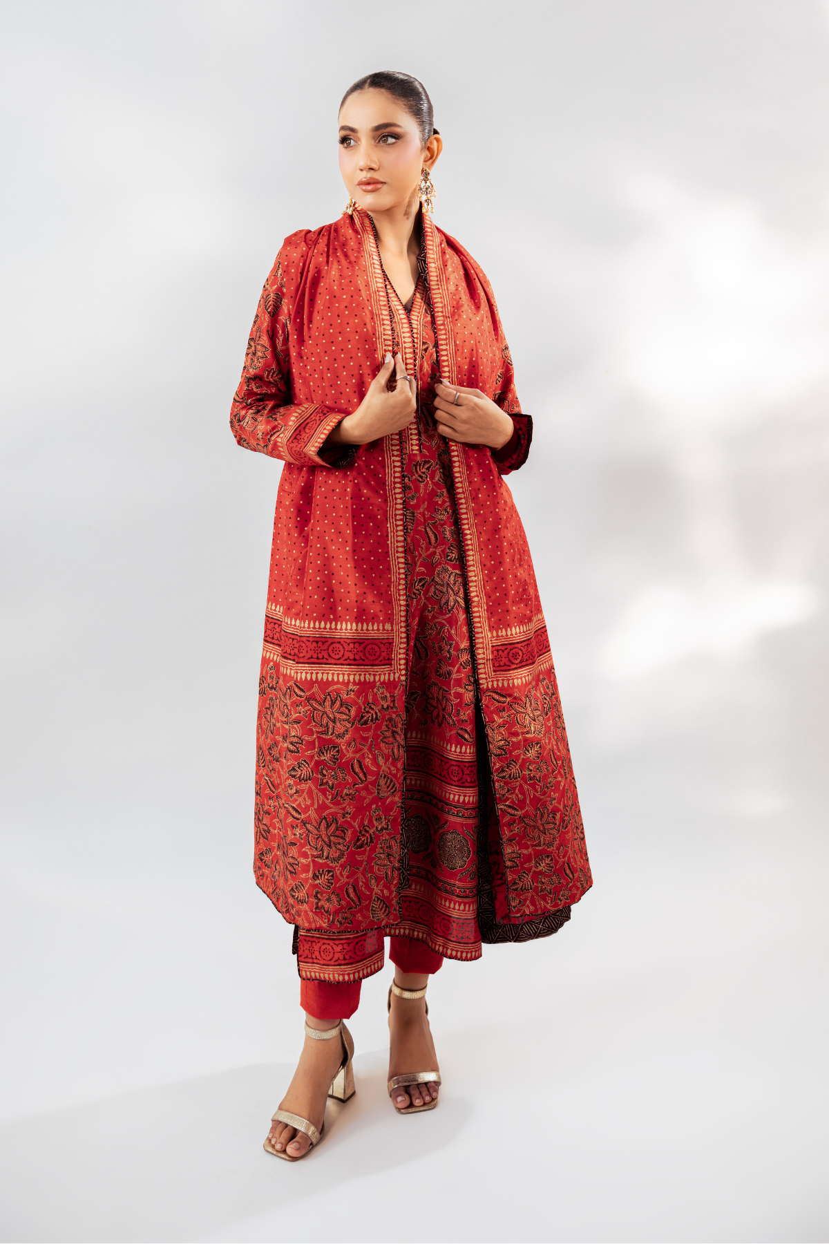 Odhini: Double Sided Block Printed Odhini Total Fabric: 7 metres Block Printed Shirt Plain Trouser